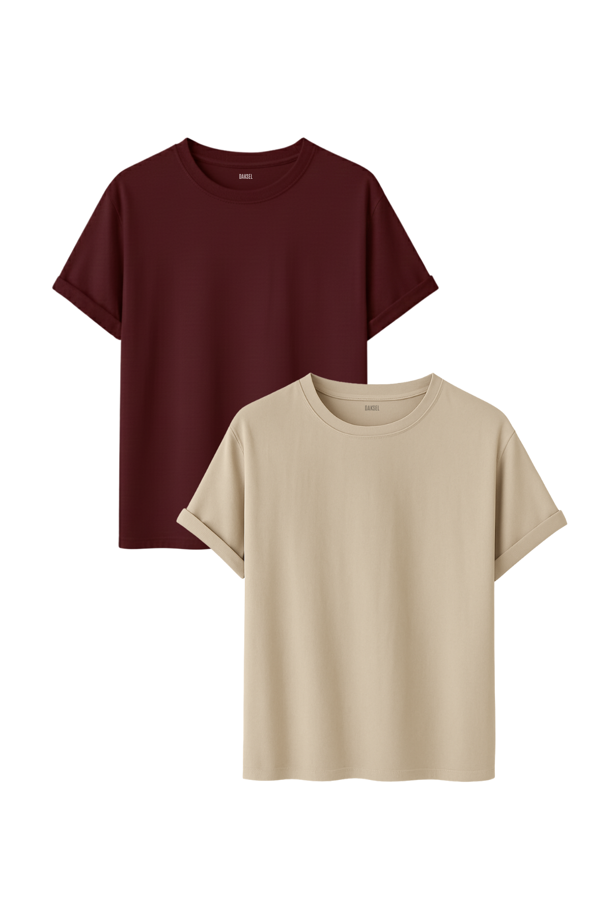 Biri Bordo, diğeri Taş renkli 2 adet tişörtten oluşan bu set, %100 pamuklu nefes alan dokusu ve Standart Kalıp yapısıyla gün boyu seçkin ve rahat bir stil sunar.