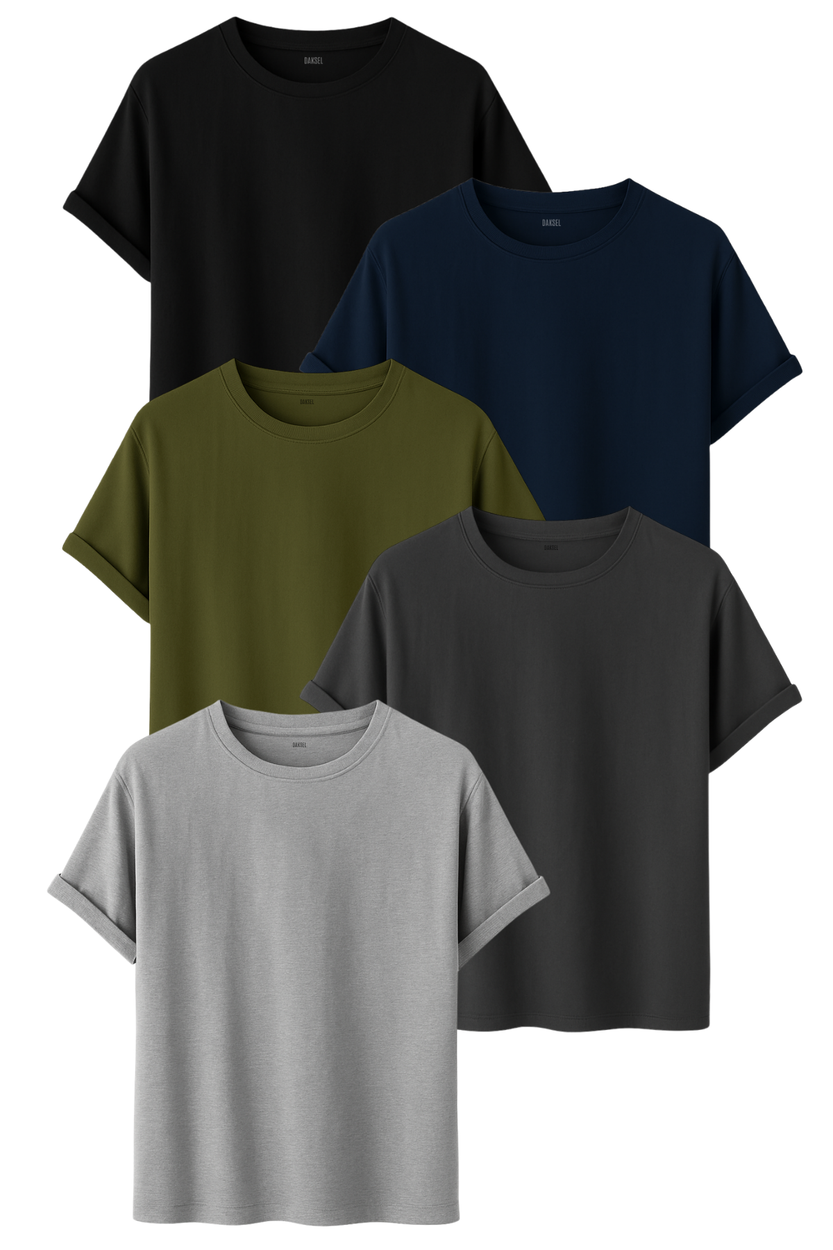 Siyah, Lacivert, Haki, Füme ve Gri renklerinden oluşan bu özel set, %100 pamuklu nefes alan dokusu ve ideal Standart Fit (Regular Fit) kalıbıyla gün boyu konfor sunar.