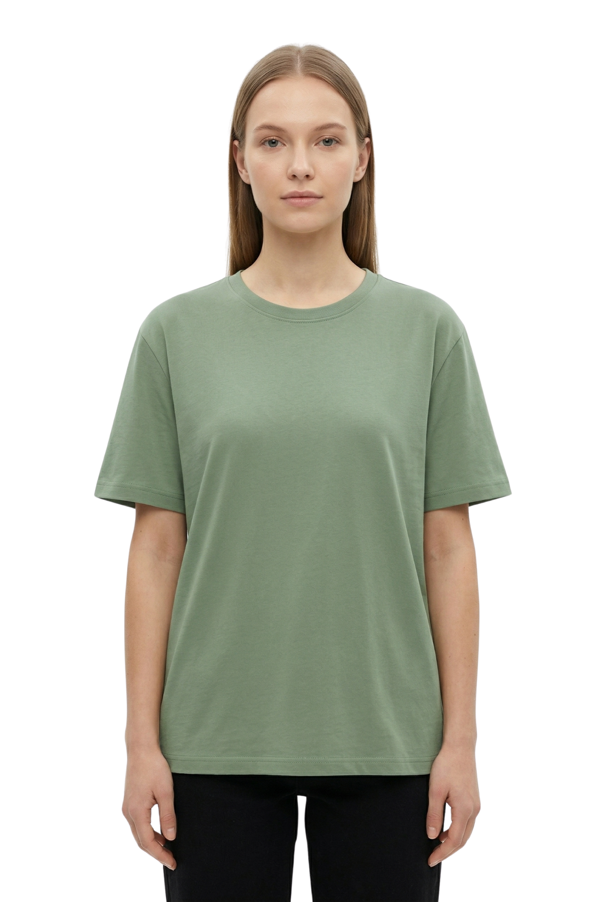 Huzur veren çağla yeşili tonu ve %100 pamuklu nefes alan dokusuyla bu tişört, Standart Fit kalıbı sayesinde hem şık hem de konforlu bir kullanım sunar.