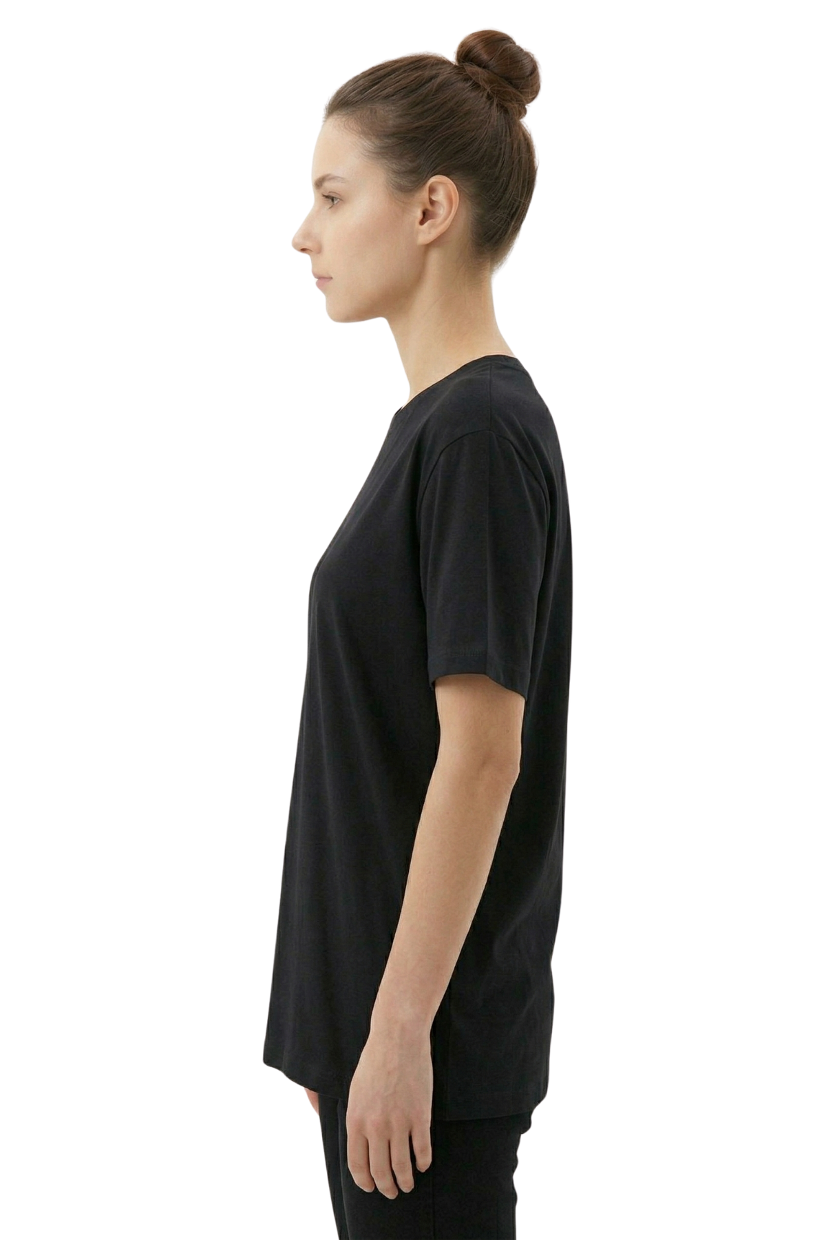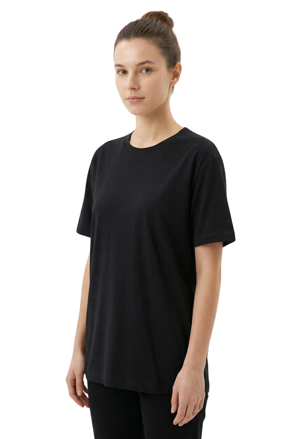 Gardırobunuzun en joker parçası olmaya aday %100 pamuklu nefes alan dokusuyla bu tişört, Standart Fit kalıbı ve derin siyah rengiyle her mevsime ve her tarza hitap eder.